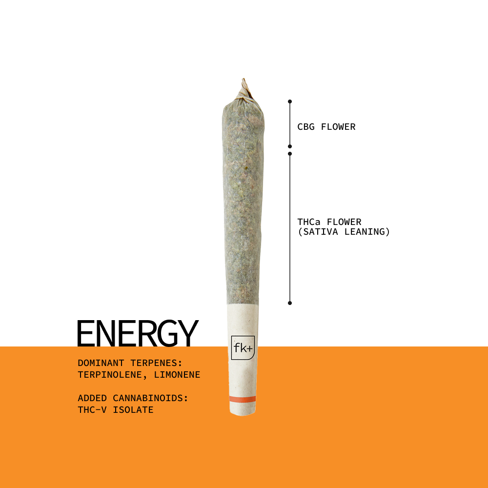 Carefully blended ratios of energizing and mood boosting cannabinoids. THC for an uplifting and mood enhancing boost, THCV for energy and appetite suppression and CBG to create balance among cannabinoids.