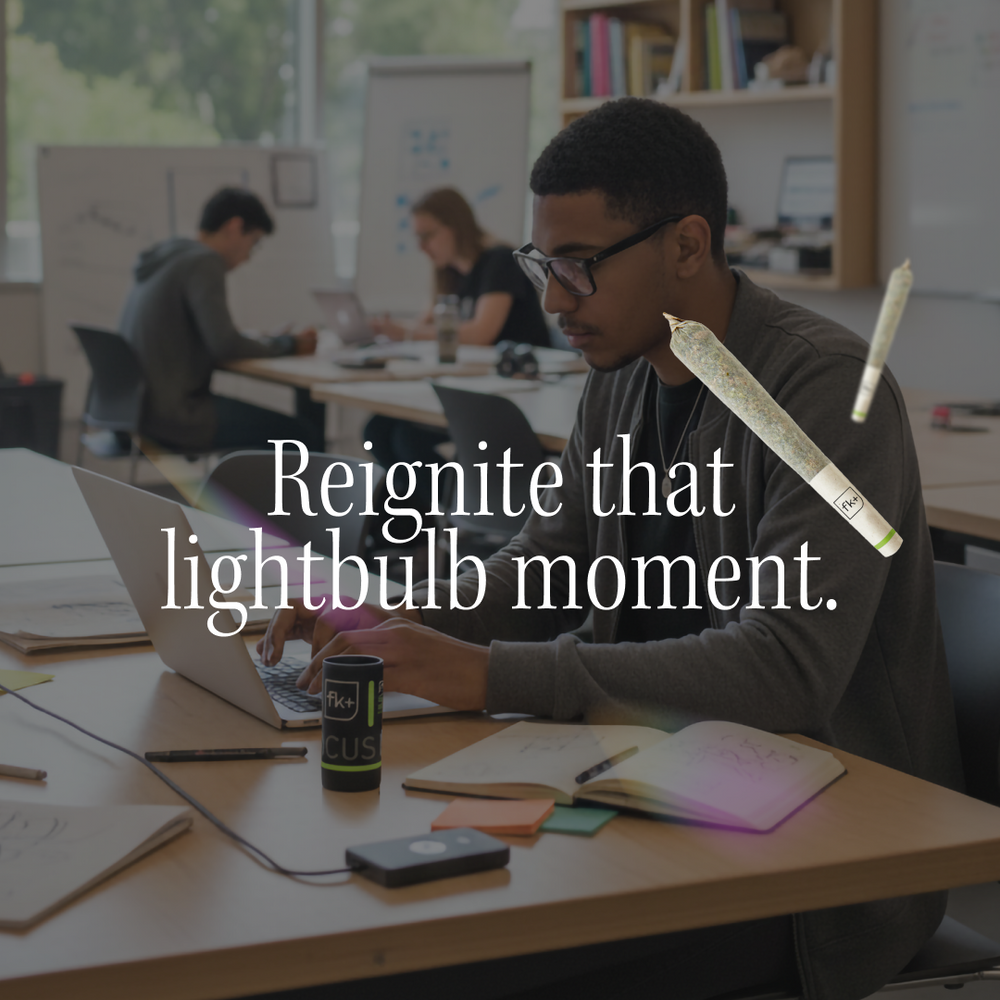 Reimagine mindfulness with our Focus+ pre-rolls, a coffee break alternative infused with brain-boosting terpenes to keep you creative and sharp.